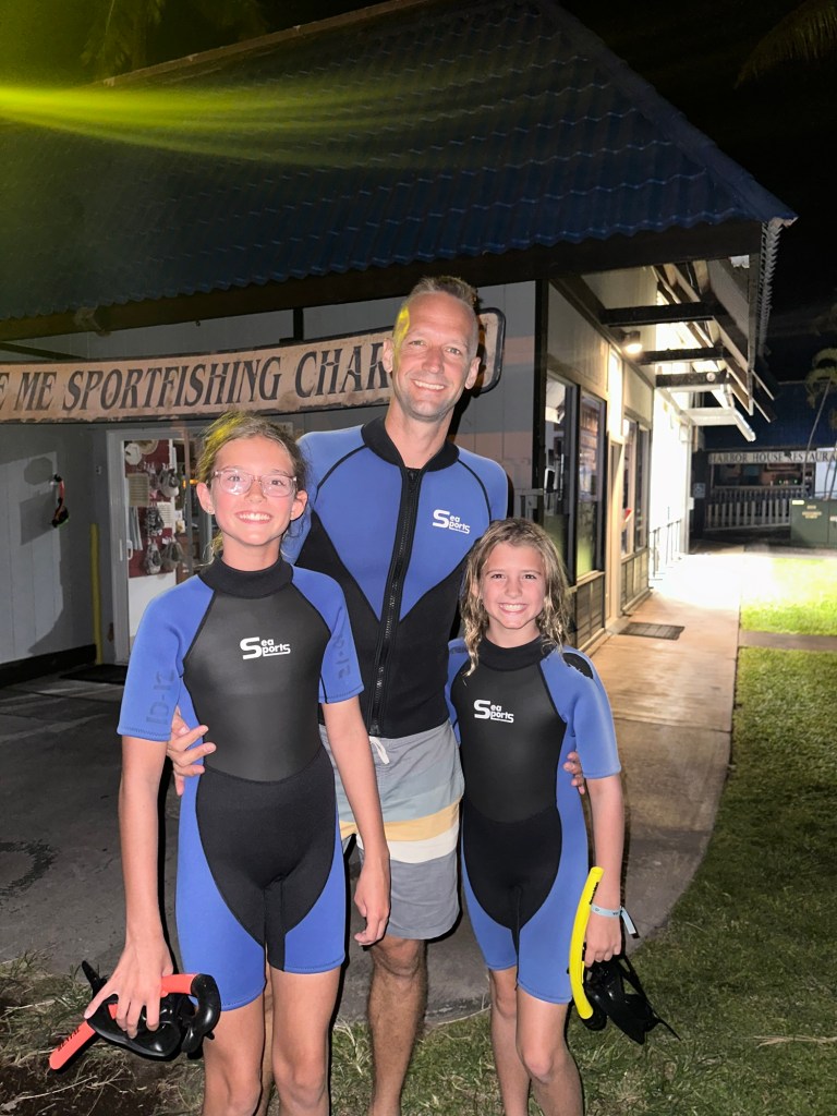 Enjoyed the hotel pools and a snorkel trip off the west coast of the island. Highlights included seeing dolphins, finding and holding an octopus, pincushion starfish, sea urchin and sea cucumber and swimming with a sea turtle. Aaron and the girls did a night excursion to swim with manta rays – water was chilly but the rays swimming belly up against them was pretty incredible!