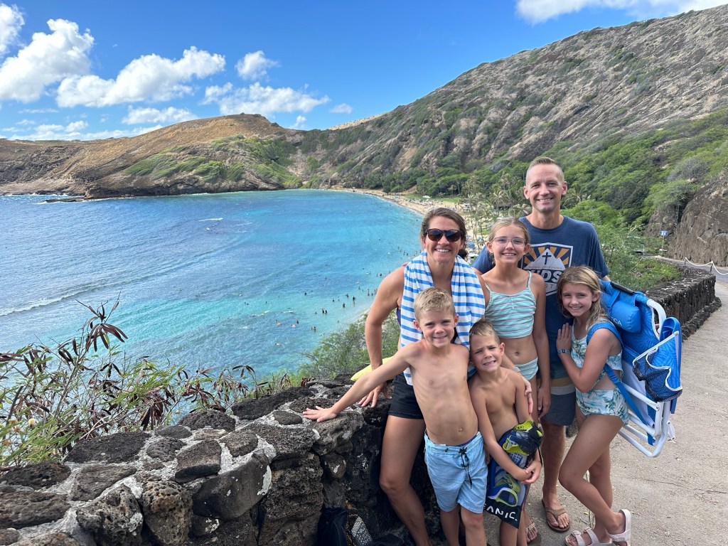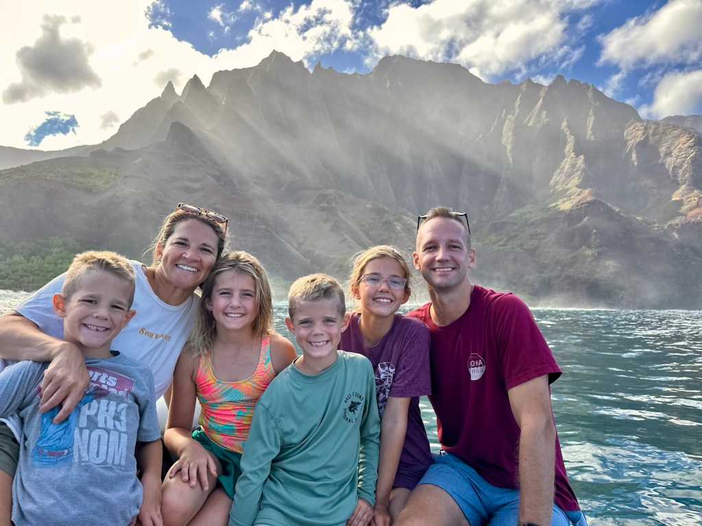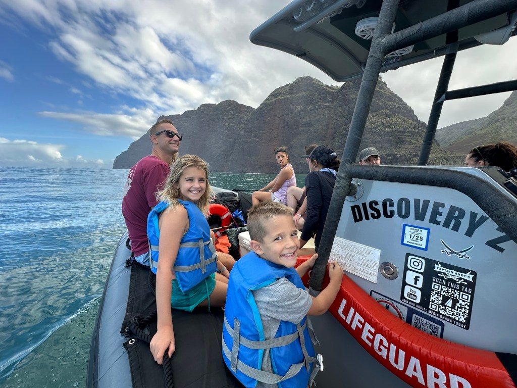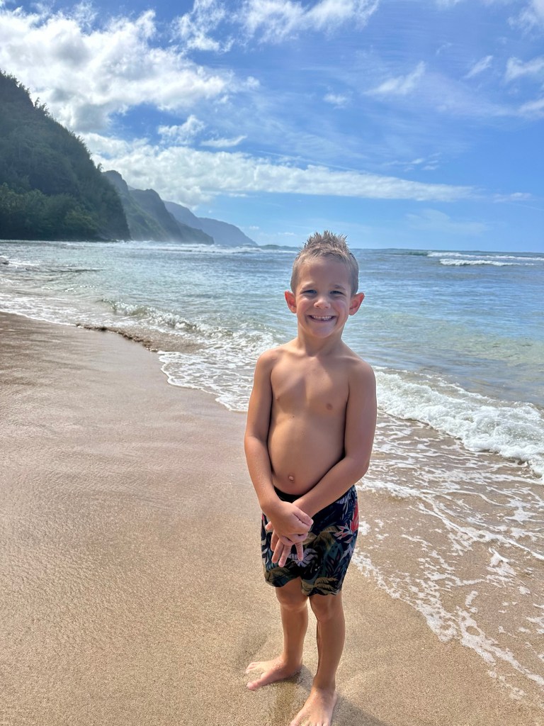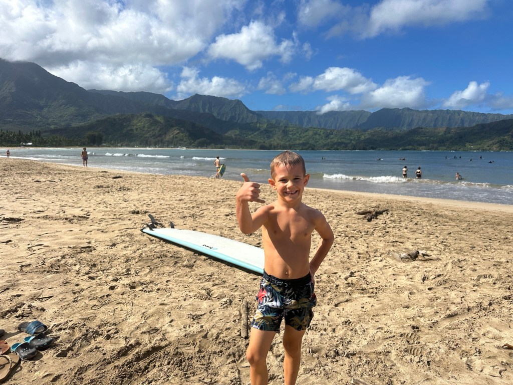 A major highlight was a boat tour of the Na Pali coastline. Only accessible by boat, helicopter or a 12 mile hike, the coast is incredible. We also drove up into Waimea Canyon which had some amazing views. The kids’ highlights were the dolphins on the boat trip and surfing all day Monday in Hanalei Bay! It was super fun for mom and dad to be back 5 years after our trip here for our 10yr anniversary and show the kids some of the spots we loved.