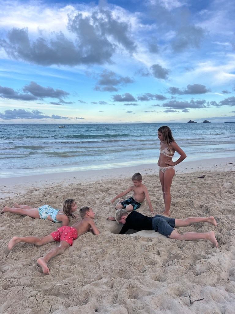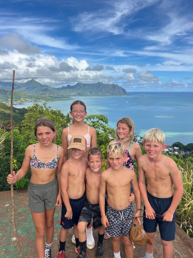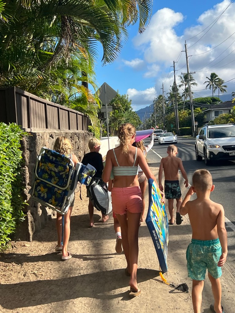 The Carusos came to visit for Thanksgiving! It’s been so fun to show people around our spot here and it was a new and different Thanksgiving experience here in Aikahi. We cooked our meat (turkey and brisket!) on the school Imu (the kids had worked to carry the lava rocks during school that week and others helped to dig the whole for the pit), we got our sides from Whole Foods (highly recommend!) and enjoyed a hike and the beach on Thanksgiving day with very minimal time in the kitchen. A great few days connecting with friends and enjoying the beautiful weather and surroundings here – lots to be thankful for!