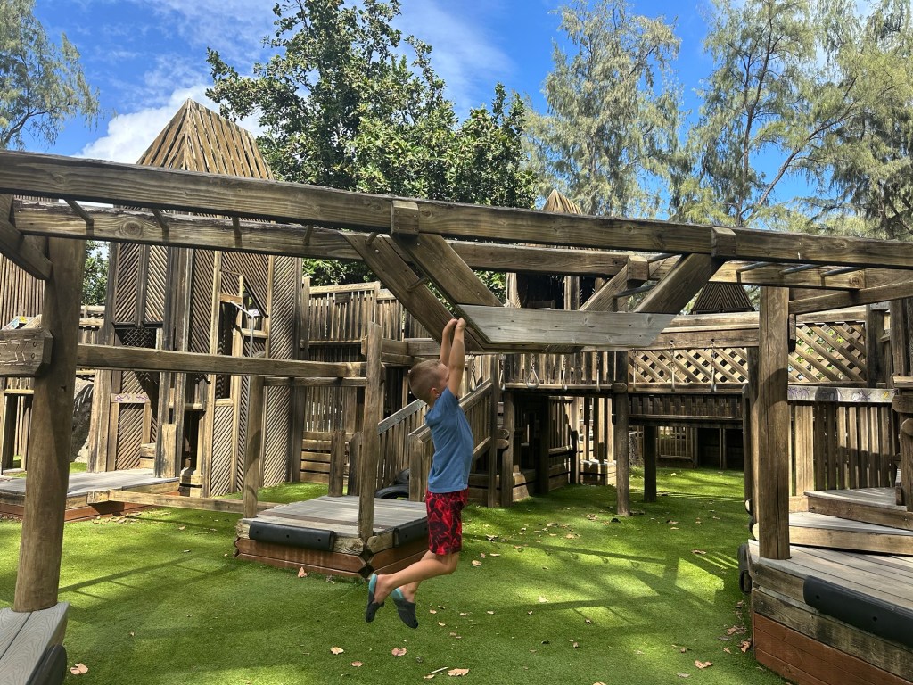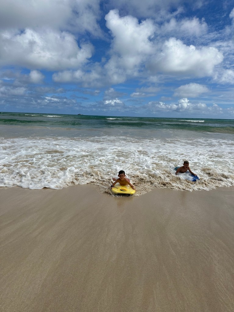 The weather was great and surf was high which made snorkeling and swimming not possible at most spots on the northshore. But we had fun running from the massive waves, building sand castles and practicing surfing. Found a cool playground, went to a local farmers market, and lots of surf shops, and food trucks. We got plenty of shave ice and smoothies!