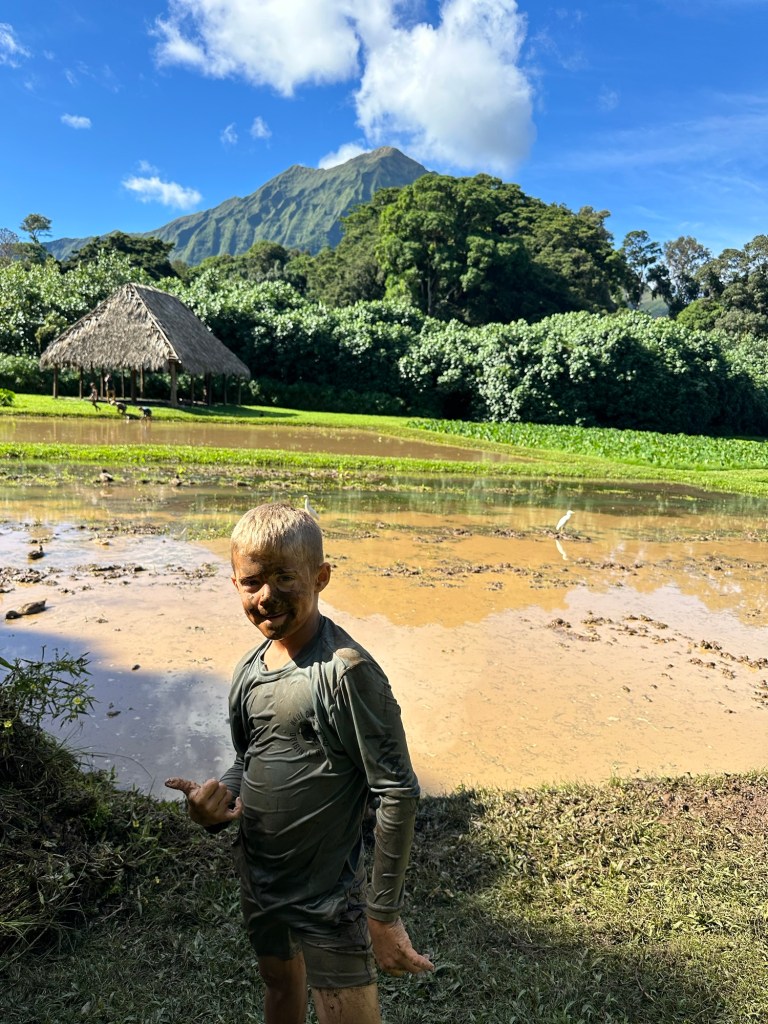 Graham went to Hoʻokuaʻāina, a community non-profit where the kids learned how to grow and care for taro and its importance and history to the Hawaiian culture. The kids helped pull weeds before having a mud pit race.