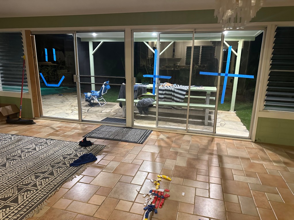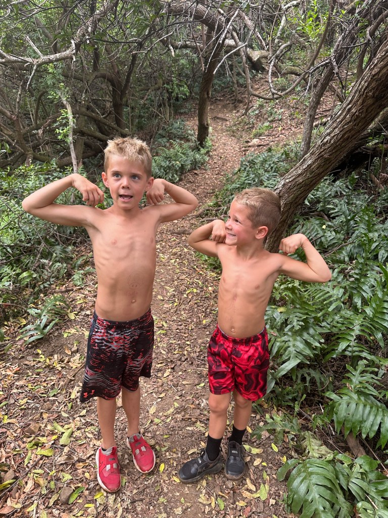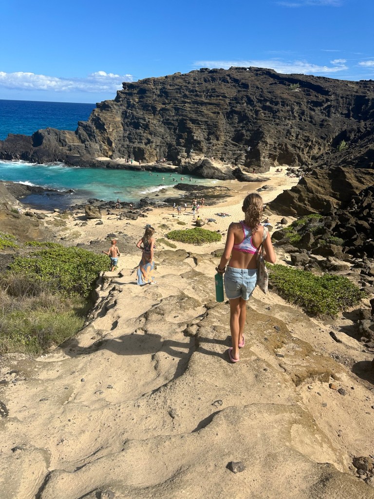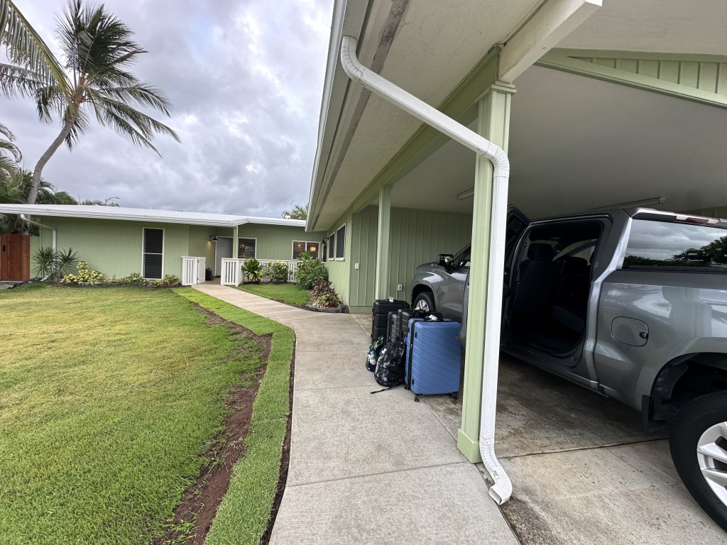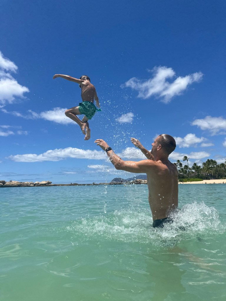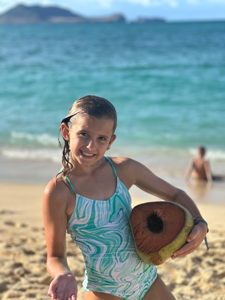 Arrived in Honolulu at 4:30pm local time (10:30pm EST) – tired and excited to get to our new home! Kids went swimming and Lish had a run in with the glass door so ended up in the ER for 6 staples (5 in the arm and 1 in the shin). An eventful start to our time here…and now we have tape on the doors so we don’t walk through them π