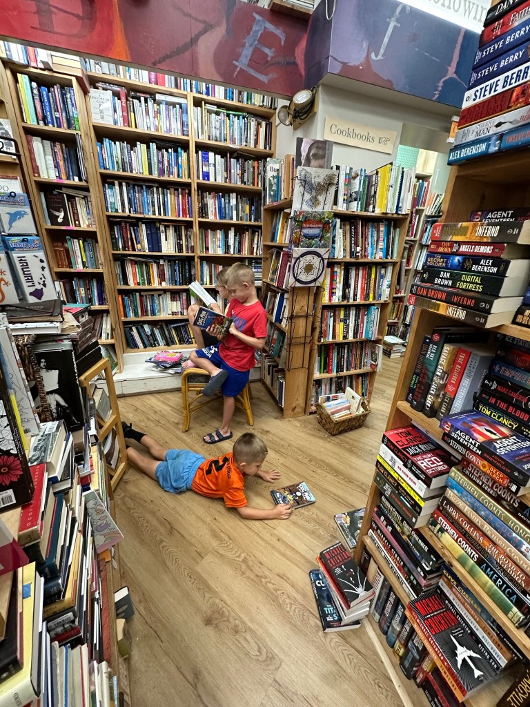 Beaches, animals (big bugs and sea turtles!), bikes, churches, playgrounds, neighborhood friends, bookstore, and a truck!