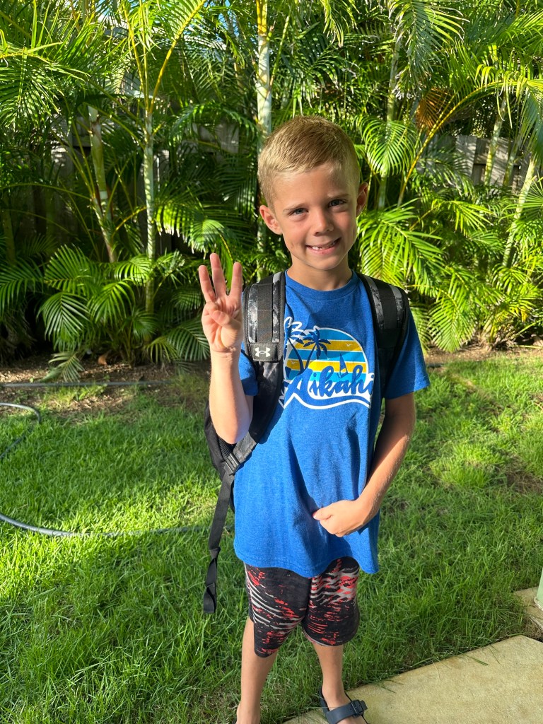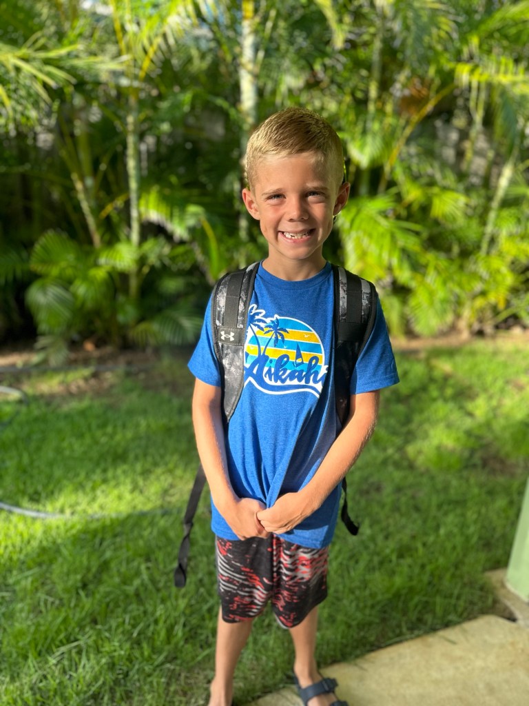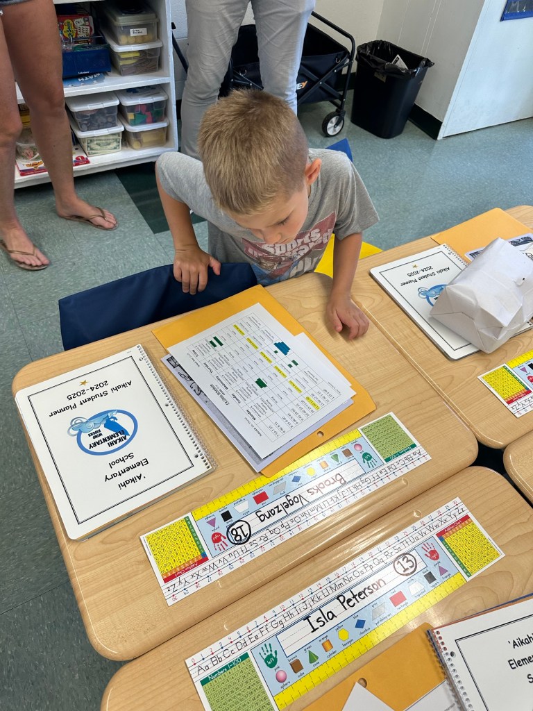 Beach and back to school night! A bit more chaotic than weβre used to but some very nice teachers and families in the Aikahi community! School starts tomorrow. Meeting friends in the neighborhood at 7:30 to bike to school for the first day π