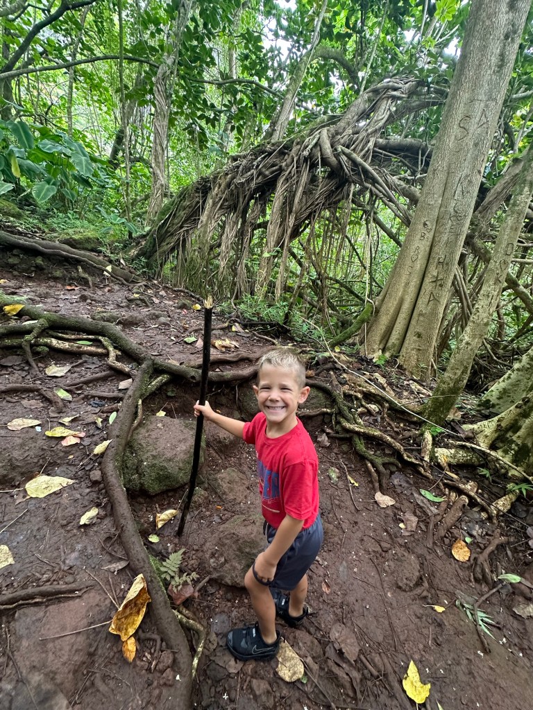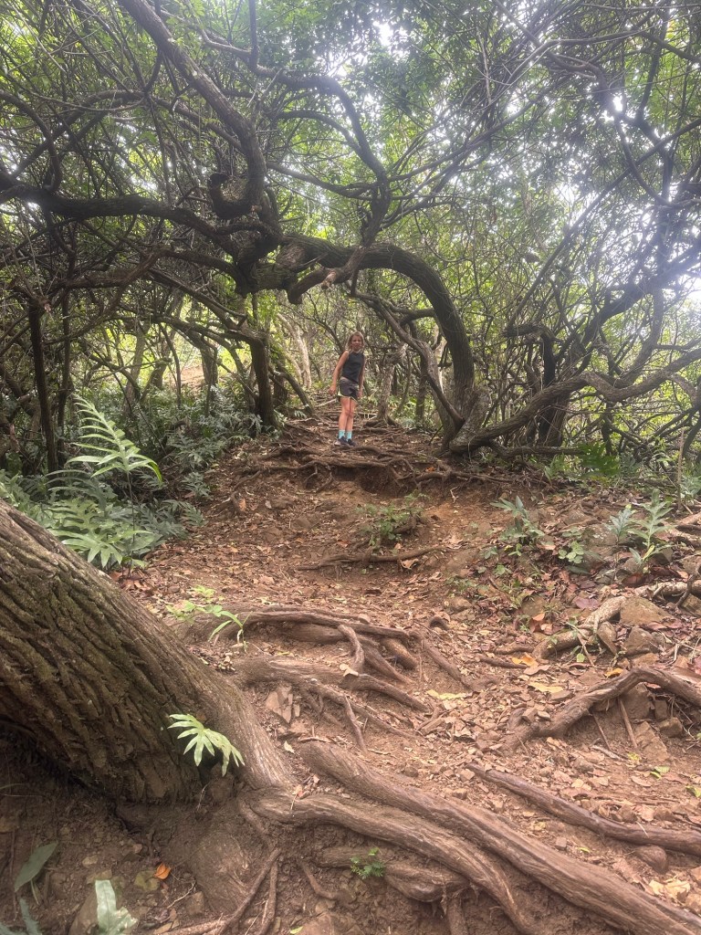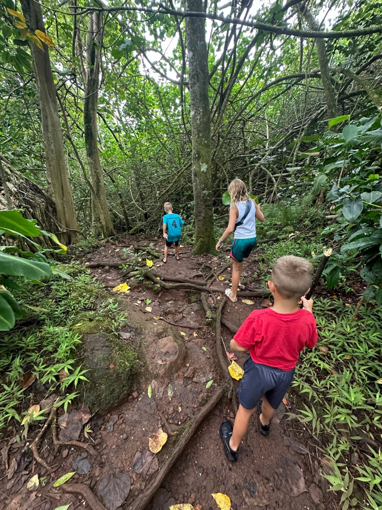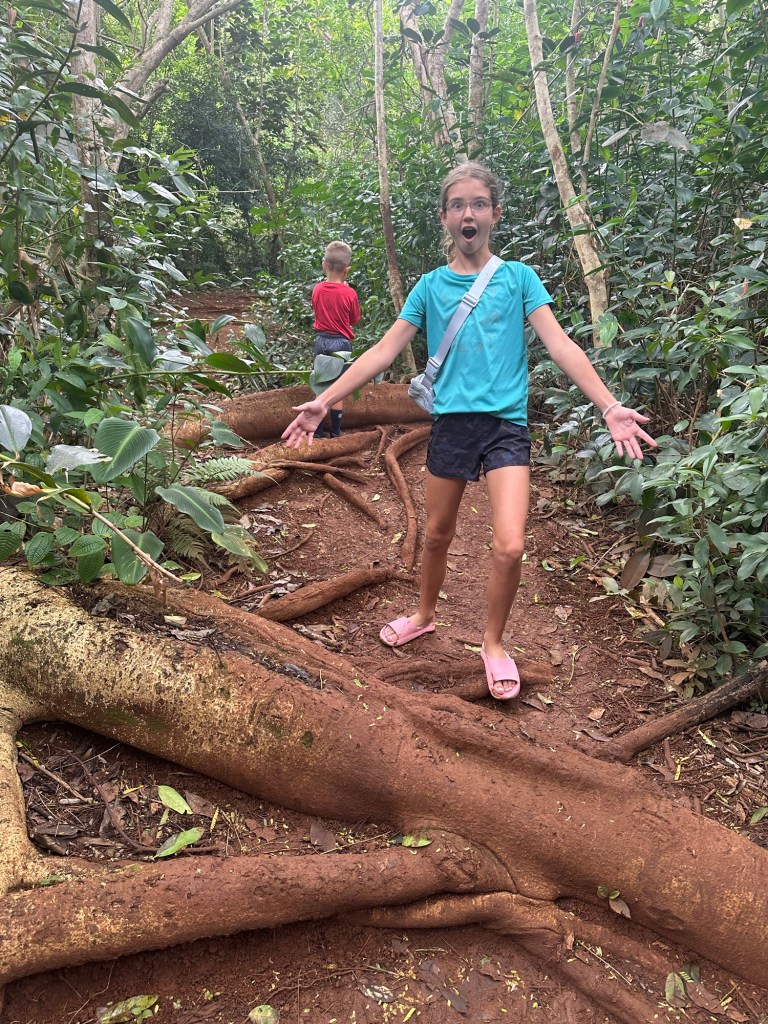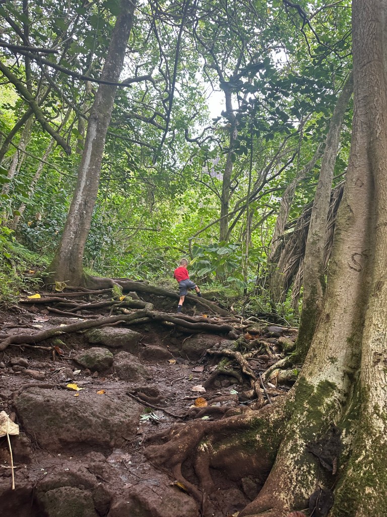 A short but very muddy Saturday hike at Likelike (lee-kay lee-kay) Falls with giant trees and roots and leaves along the way