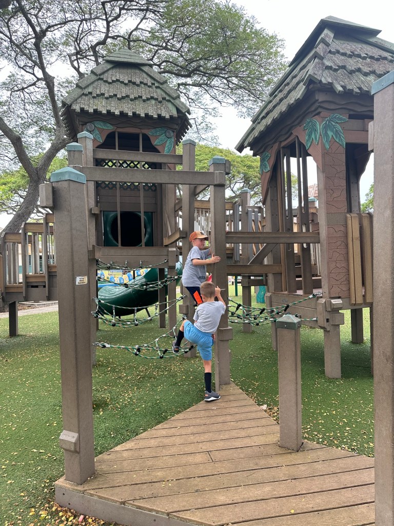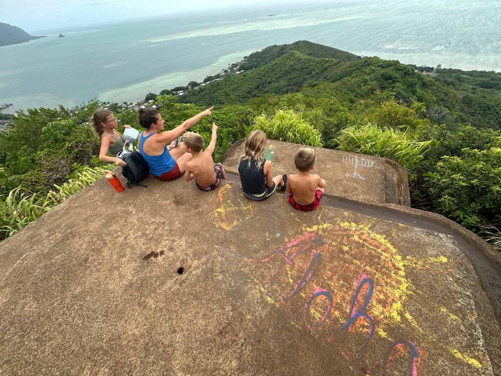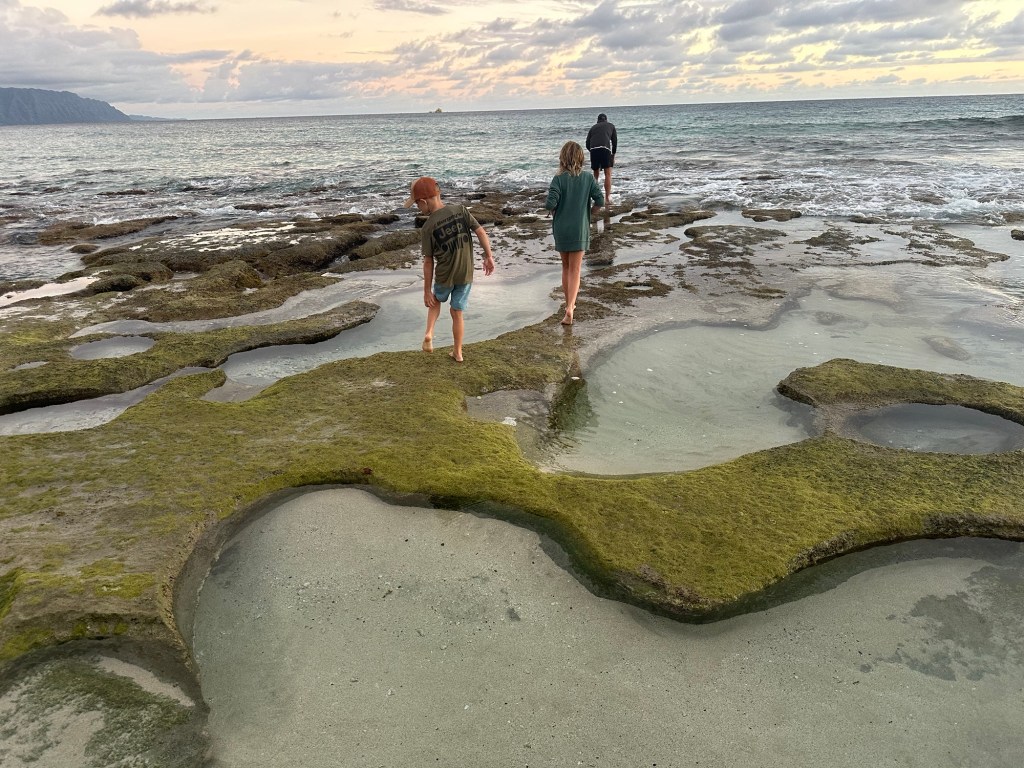 Explored the Bishop Museum on Saturday – we maxed out the kidsβ museum hours at the science center (volcanos, lava, Hawaiian crittersβ¦) and planetarium so will be back for more of the Hawaiian history and culture. Went over to WaikΔ«kΔ« Beach – very busy with fancy shops and crowded beaches but enjoyed watching the surfers! The last photo is an overlook of Kailua (full view of the mountains cropped due to several feral cats and a kind gentleman feeding them wet food along the wall)
